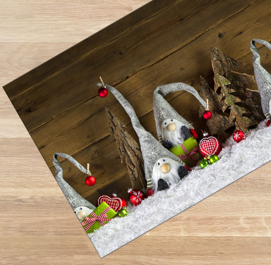 Tappeto per cucina Natale gnomi pacchi verdi